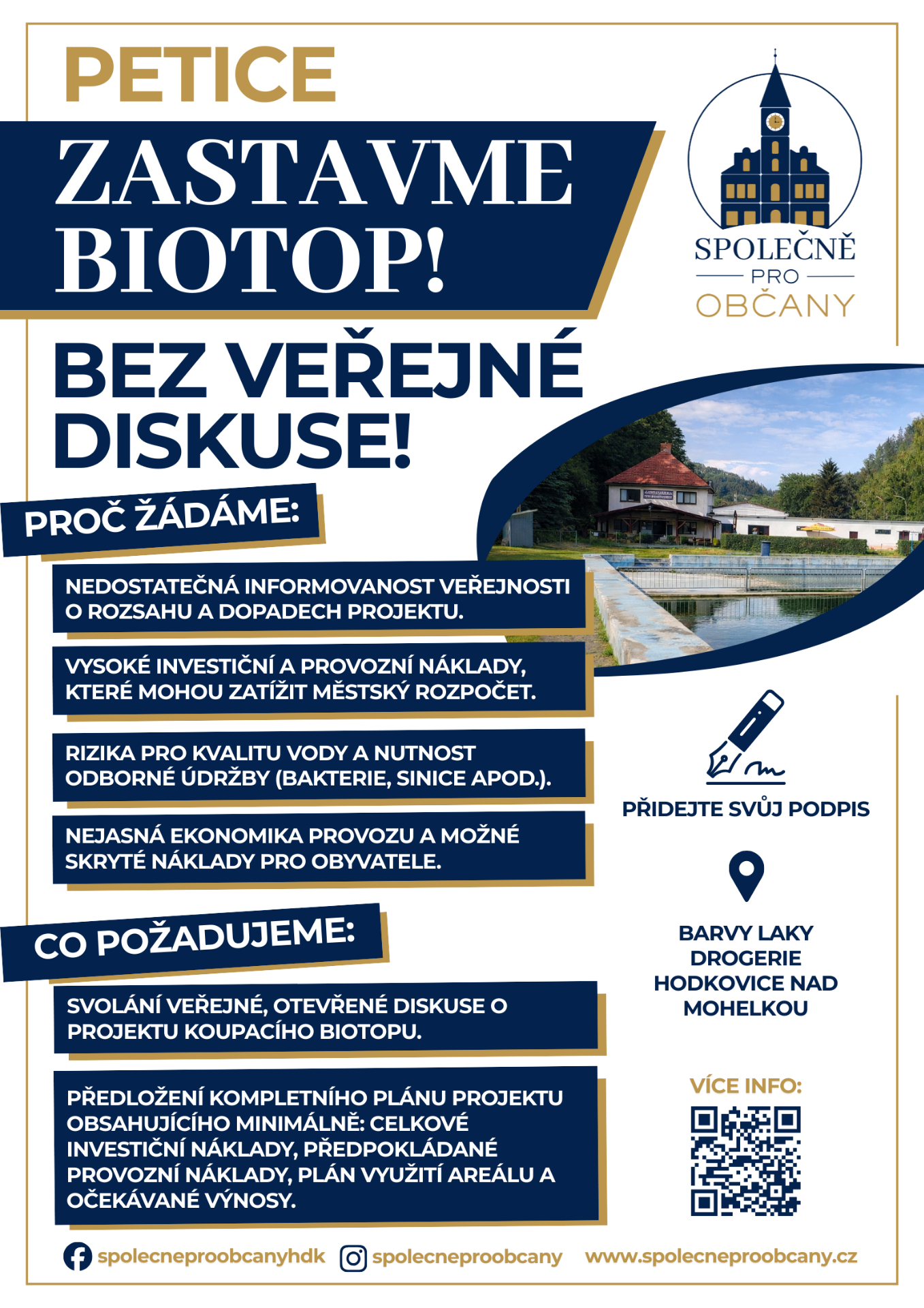 V Hodkovicích nad Mohelkou se připravuje projekt koupacího biotopu, který může mít dlouhodobé dopady na rozpočet města i jeho budoucí rozvoj. Domníváme se, že o takto významném projektu má proběhnout otevřená a transparentní veřejná diskuse.